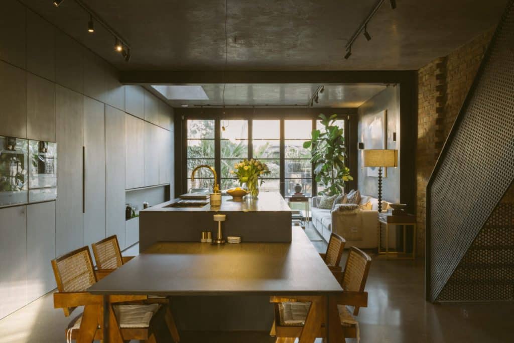 • a kitchen with a sink and a dining room table