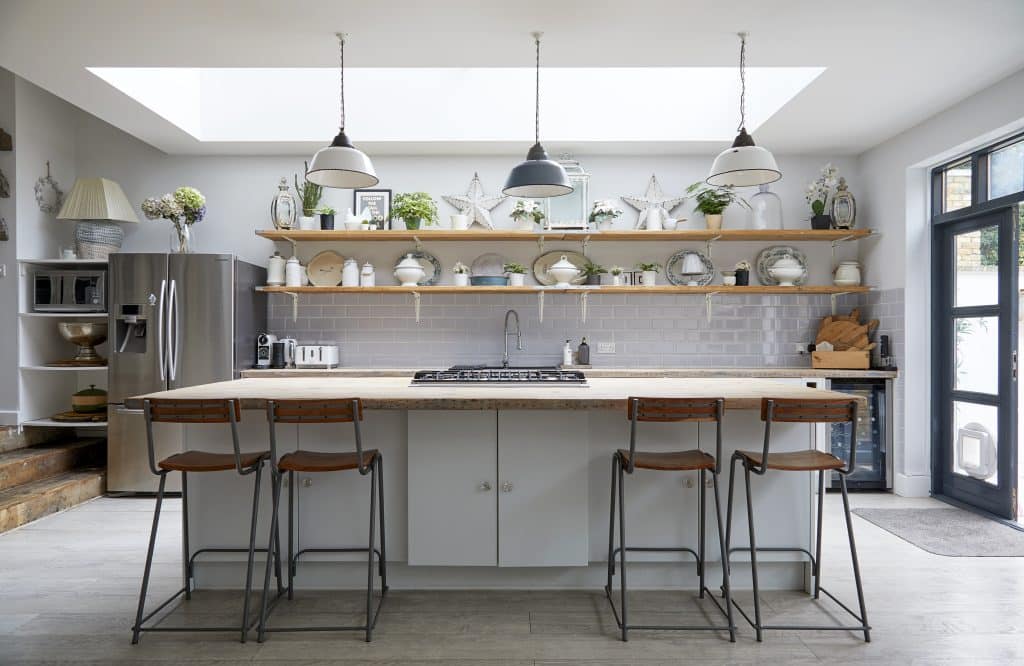 • a kitchen with an island in the middle of a room
