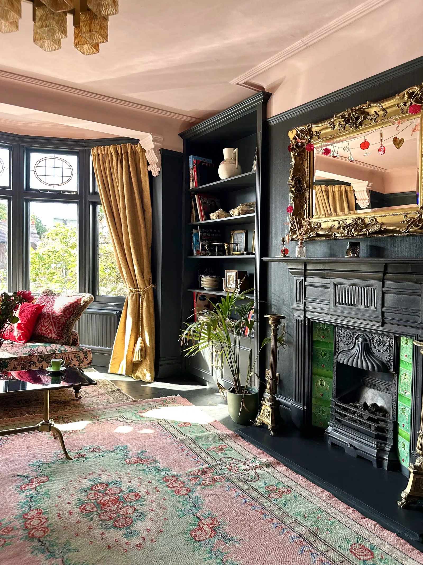 The house has been decorated in a vintage eclectic Art Deco style, with patterned wallpapers, dark timberwork and brass vintage fixtures and fittings, culminating in an atmospheric location choice.