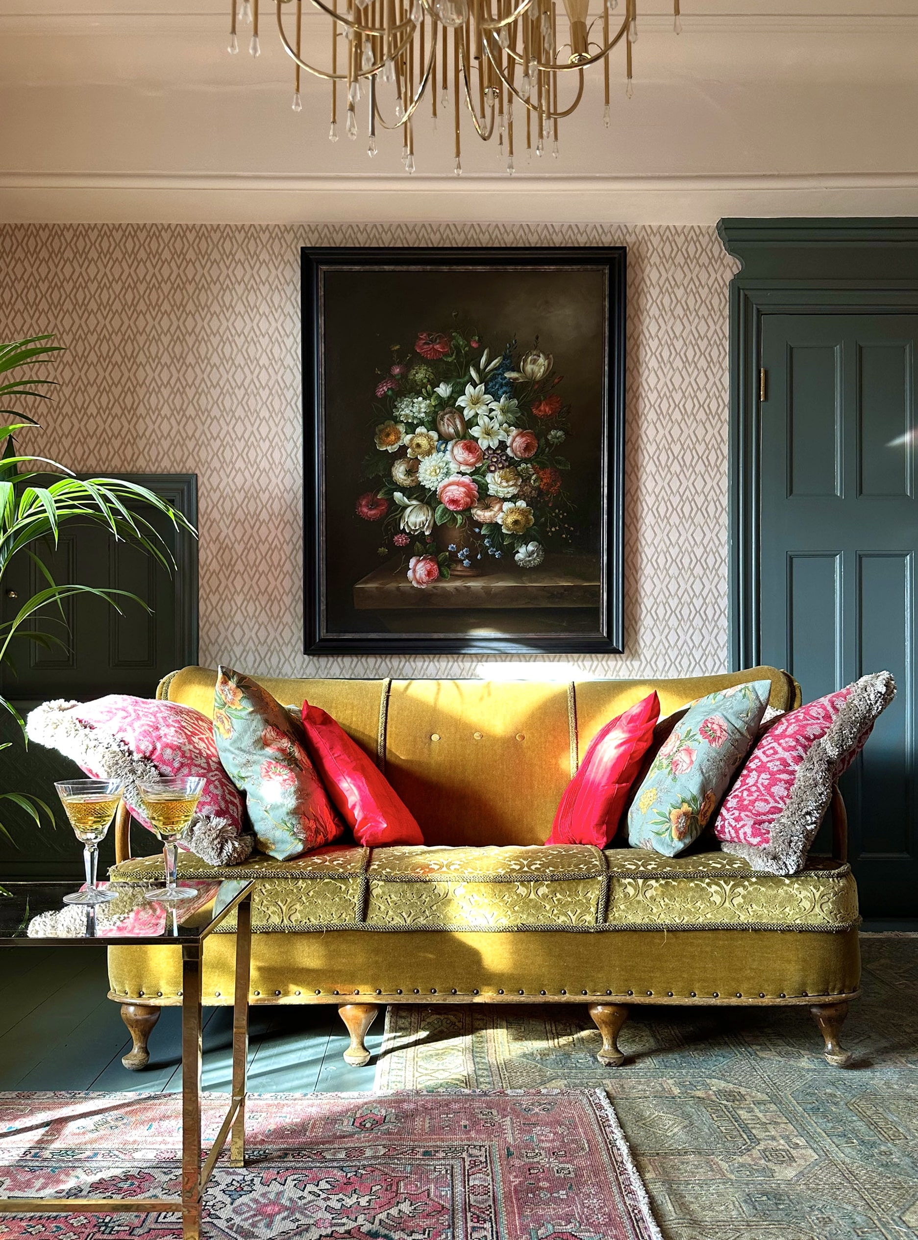 The house has been decorated in a vintage eclectic Art Deco style, with patterned wallpapers, dark timberwork and brass vintage fixtures and fittings, culminating in an atmospheric location choice.