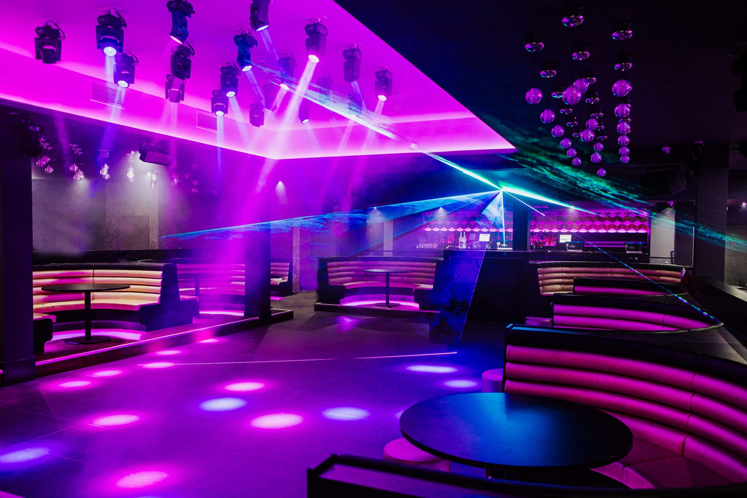 Faces offers a contemporary, adaptable interior with built-in technical infrastructure, making it a practical and visually striking choice for productions seeking a modern nightlife or event setting.