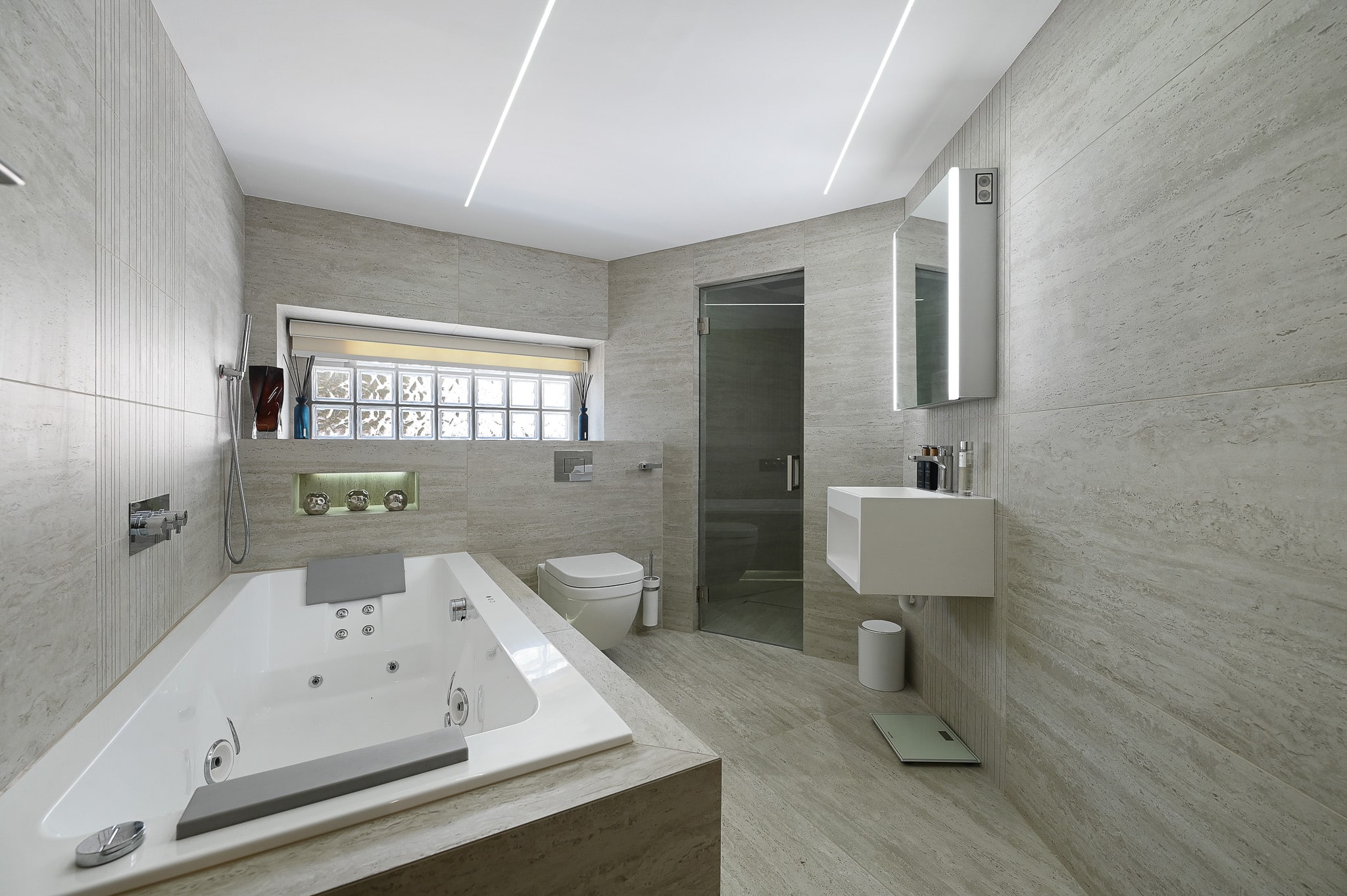 The location also boasts a cinema room and garden with decking. The interiors of the property have a luxe hotel feel, with neutral and grey tones featuring throughout perfect for contemporary shoots.