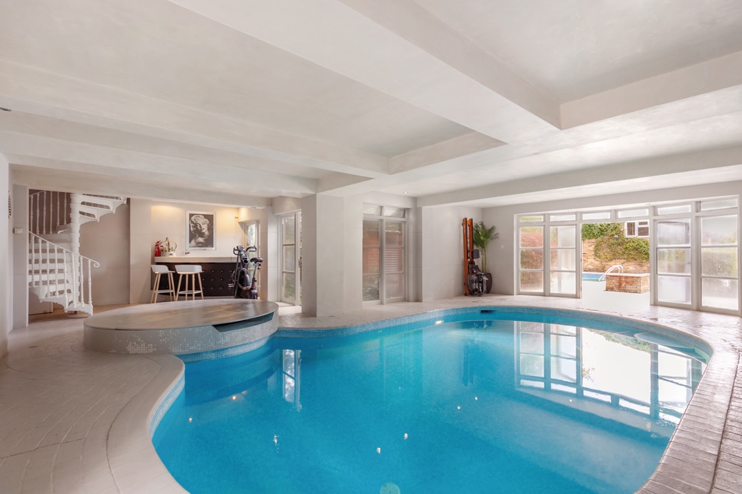 • Indoor & Outdoor Leisure Areas: A striking indoor swimming pool and hot tub are complemented by a stunning outdoor pool.